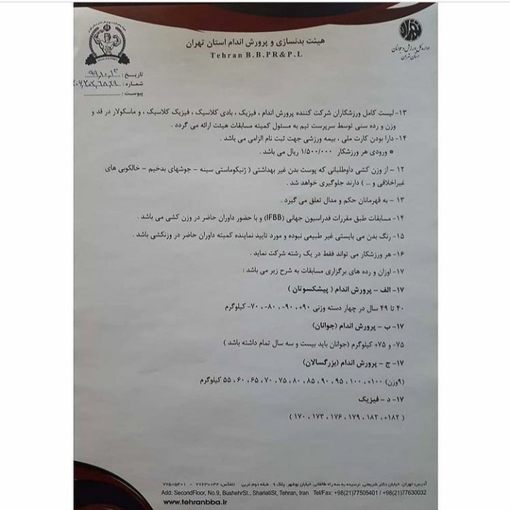 گفتنی است هزینه ورودی هر ورزشکار ۱۵۰ هزر تومان است و هر ورزشکار فقط در یک رشته می تواند شرکت کند.