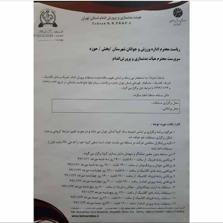 لک اعلام کرد درحال فراهم کردن ساز و کارهای لازم برای لوکیشن مسابقه و انتخاب بهترین سالن برای برگزاری مسابقات تهران هستند.